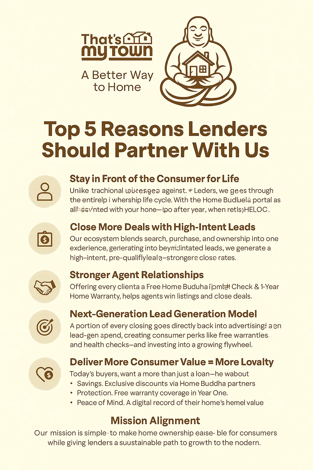 Learn more about Powered By Lenders "That's My Town" Program and the available partnership opportunities that will scale your purchase loan business and build stronger agent/lender partnerships!